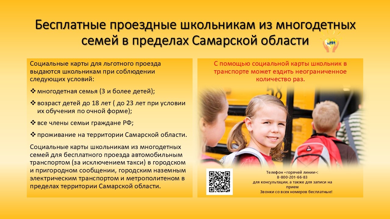 Уважаемые жители Западного округа напоминаем, что вы можете оформить бесплатные проездные школьникам из многодетных семей в пределах Самарской области.